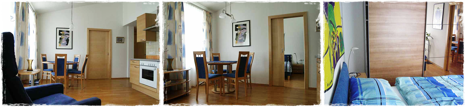 Die Wohnung 2 liegt im ersten Stock zur Gartenseite und bietet auf ca. 40 m² zwei Badezimmern und Blick auf die Lienzer Dolomiten.